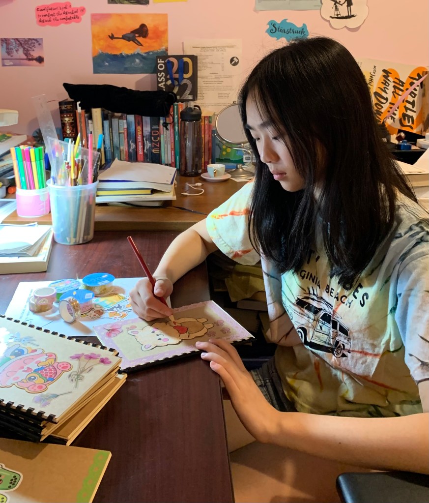 I’ve always enjoyed painting and crafting which has allowed me to make pillows and notebooks with my passion for art while simultaneously keeping in mind the people who these items will go to. Going to events and creating these objects is a great way to give to people in our community who are currently undergoing cancer treatment. – Anna